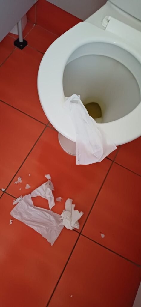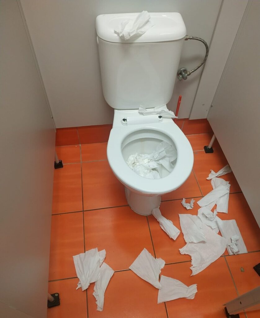 V poslední době jsme opakovaně řešili poškozování školního majetku – převážně školních lavic. A že fantazie některých jedinců opravdu nezná mezí, protože v poslední době kreativita stoupla. Vnější okna pocákaná pitím, terasa „ozdobená“ kávou a slazenými nápoji, odpadky poházené kolem košů, kružítko zapíchnuté do zdi, poškozené osvětlení únikového východu, ucpané toalety banánem či krabicemi od mléka… To všechno jsou situace, nad nimiž člověk někdy zůstává stát a přemýšlí, zda jde ještě o recesi, nebo už o velmi drahý druh humoru.