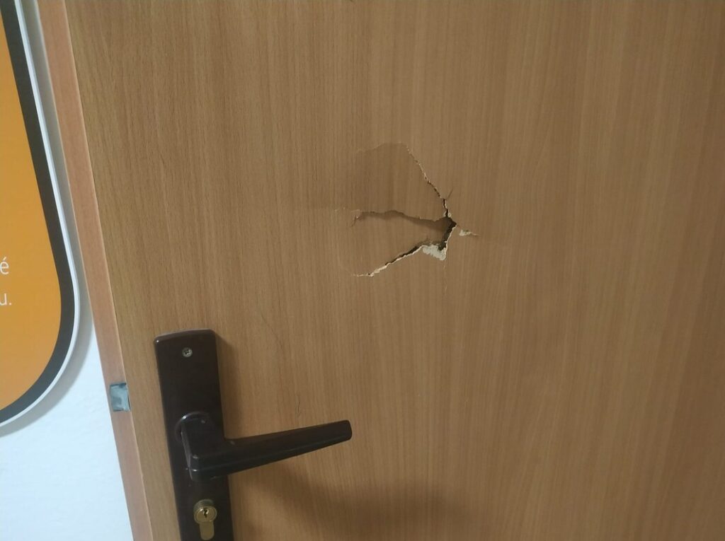 Největší kapitolou jsou ale dlouhodobě rozbíjené dveře. A právě dveře jsou věc, která se sama opravdu nerozbije. Nevznikne v nich otvor samovolně, neprokopnou se vlastní vůlí a ani se nerozhodnou přestat fungovat jen proto, že je pondělí. Proto jsme nyní nechali v jedné chodbě dveře vyměnit. Nebyla to ani levná, ani jednoduchá záležitost. Kromě samotných nákladů to znamenalo i velké množství práce a času, protože pan školník musel každé jednotlivé dveře upravovat přesně na míru konkrétnímu otvoru. Výsledek je pěkný a funkční. Byla by velká škoda, kdyby se z nových dveří znovu staly oběti školního „akčního programu“.