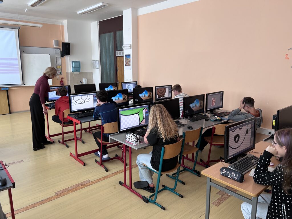 V pátek 3. 10. 2025 jsem navštívil hodinu informatiky v 8. A. Byla opravdu inspirativní – žáci se věnovali počítačové grafice, poznávali různé formáty obrázků a upravovali vlastní návrhy tak, aby je následně mohli vytisknout na 3D tiskárně. Pracovali soustředěně a s velkým zájmem – bylo vidět, že je téma baví a že technologie ve škole má své místo. Někteří žáci s úpravami obrázků trošku bojovali, ale paní učitelka jim byla trpělivě k ruce – obcházela je, podporovala, vysvětlovala a pomáhala jim dojít k výsledku. Všichni tak nakonec zvládli úkoly dané hodiny úspěšně dokončit.