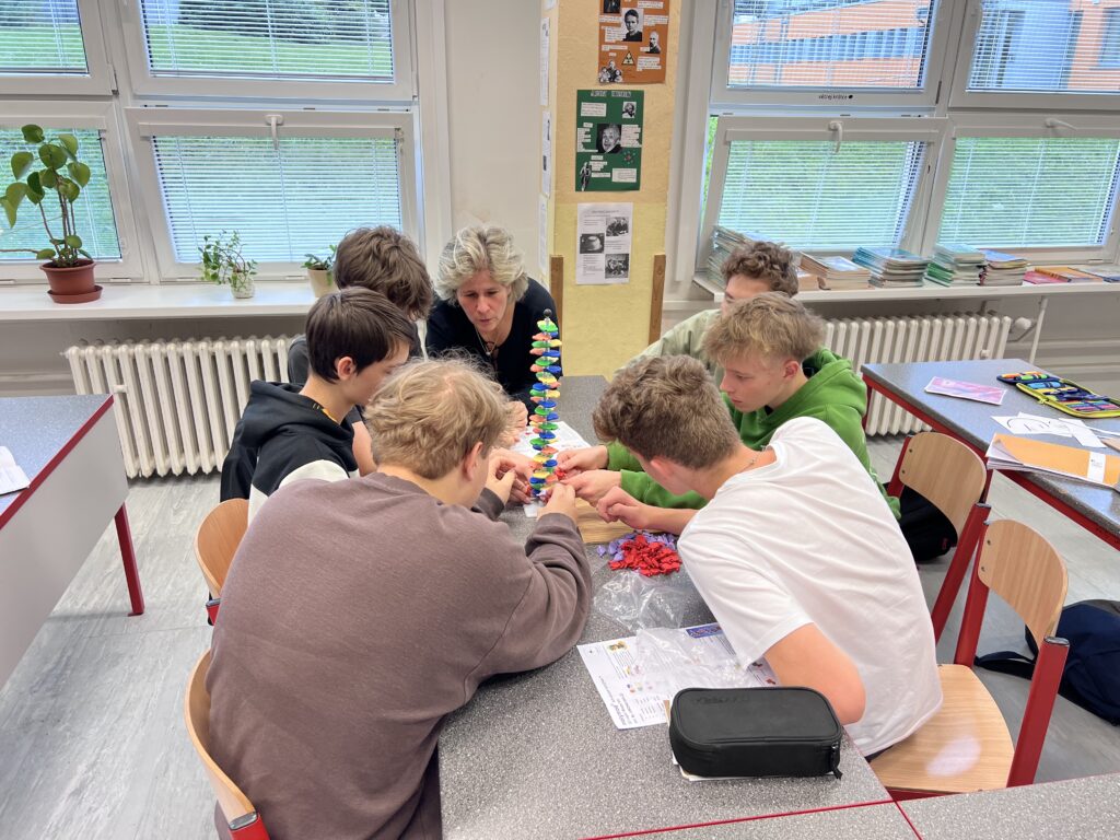 V úterý 7. 10. 2025 jsem měl možnost být zase ve výuce výchovy ke zdraví v 9. A, kde se žáci věnovali genetice. Nejenže vyhledávali informace o dědičnosti a genetických poruchách, ale zároveň sestavovali model DNA. Práce jim šla od ruky a bylo znát, že je učení stále ještě baví. A právě takové hodiny ukazují, že škola může být místem, kde se nejen učí, ale i přemýšlí, tvoří a výuka může být zajímavá a smysluplná – pro žáky i učitele.