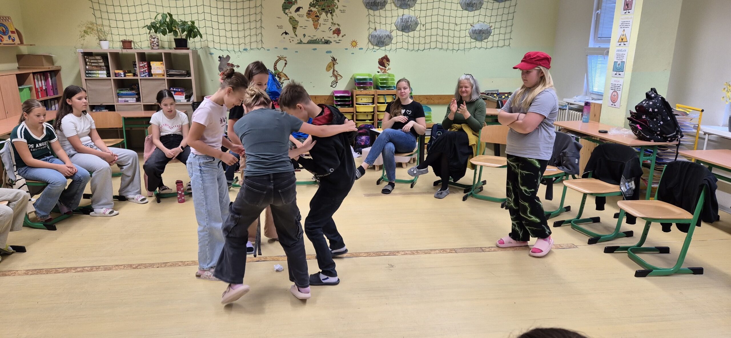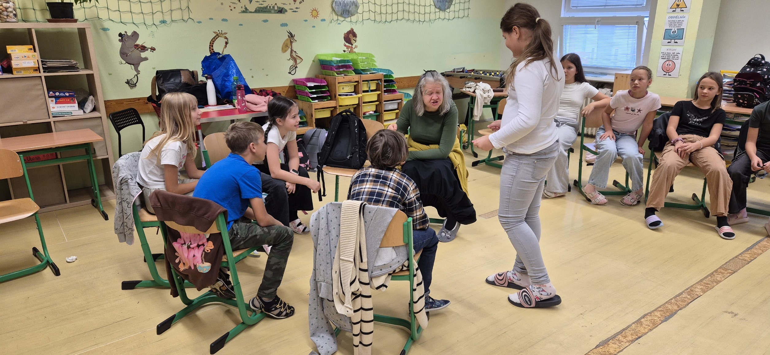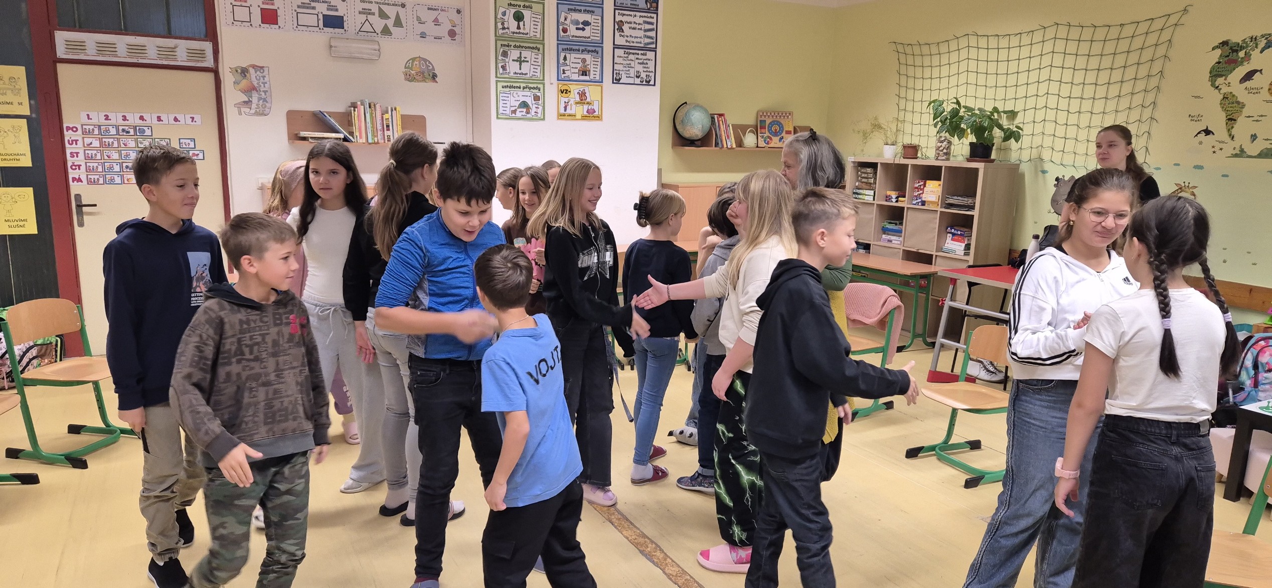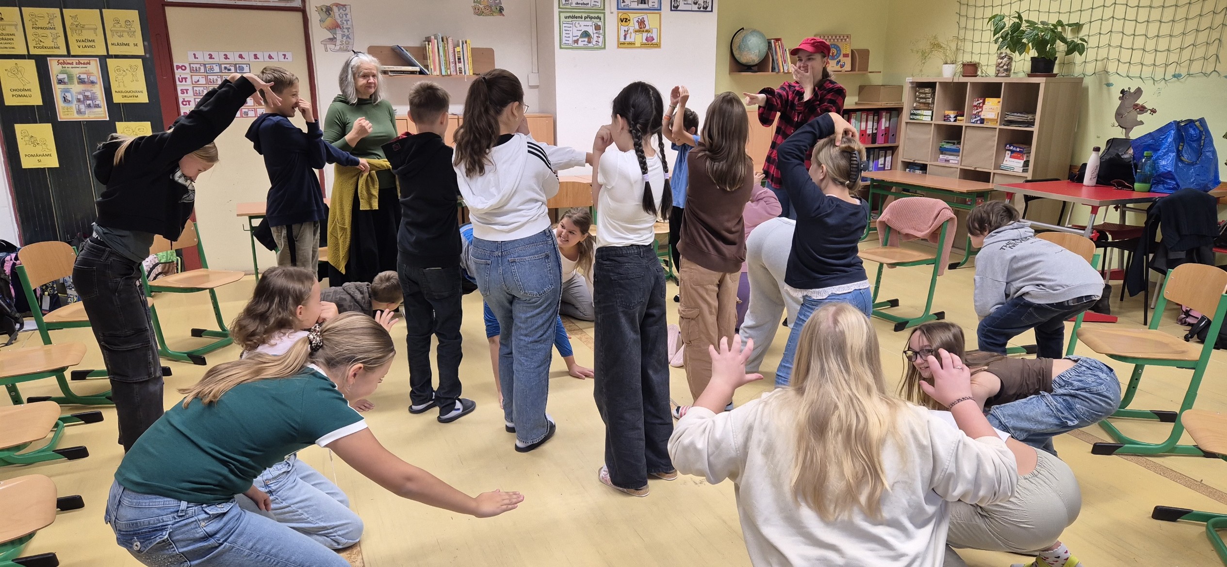 Ve středu 8. října 2025 zavítaly k žákům 5. A naší školy lektorky ze spolku THeatr ludem, který využívá k rozvoji sociálních dovedností metody dramatické výchovy a pomáhá dětem zážitkovou formou lépe pochopit různé životní situace. Drama dílna byla inspirována knihou Blbá Vendula. Děti si díky hraným scénkám mohly vyzkoušet různé situace z příběhu, kde Vendula neměla kamarády a zažívala odmítání od spolužáků.