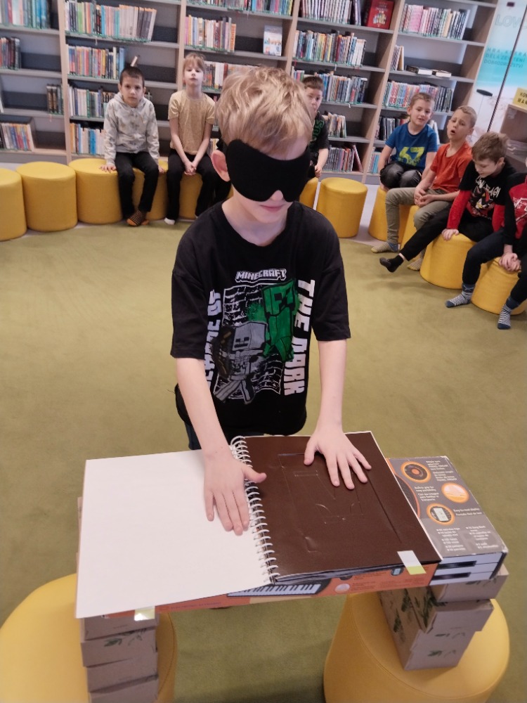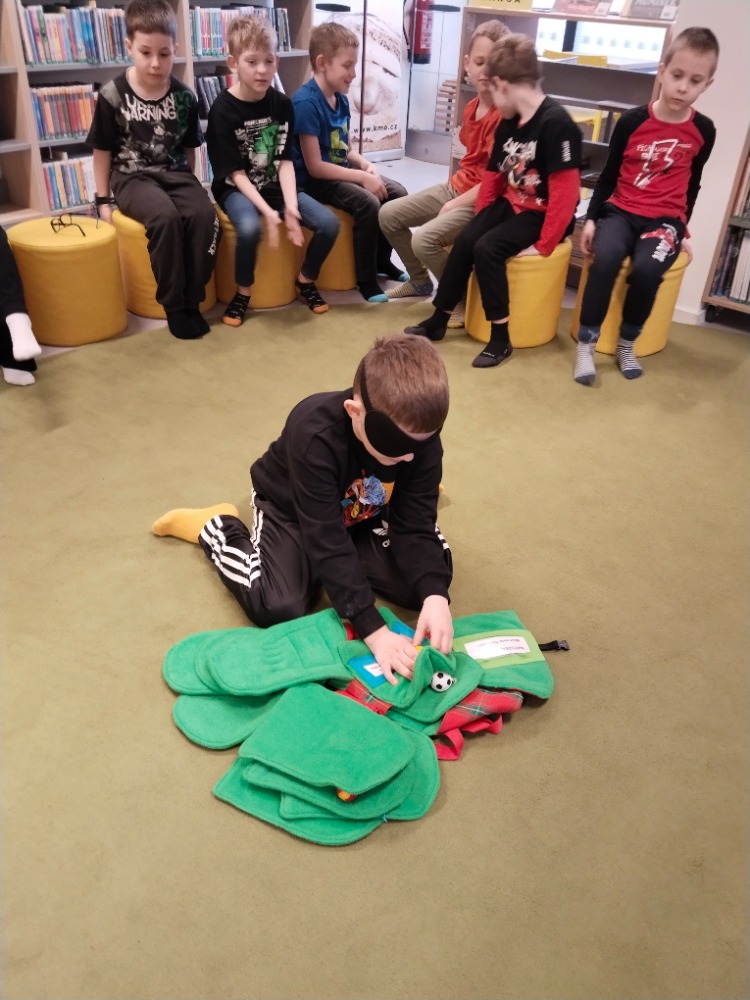 Po čtení měla paní knihovnice připravené také různé aktivity. Děti plnily jednoduché úkoly se zavázanýma očima, aby si vyzkoušely, jaké to je, když člověk nevidí a musí se spoléhat na ostatní smysly. Díky těmto aktivitám se žáci lépe seznámili s tím, jak mohou nevidomí lidé vnímat svět kolem sebe.