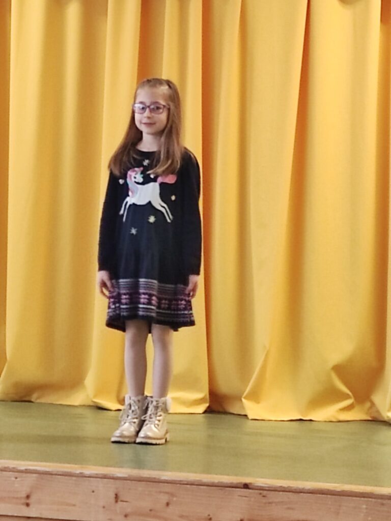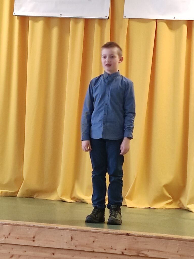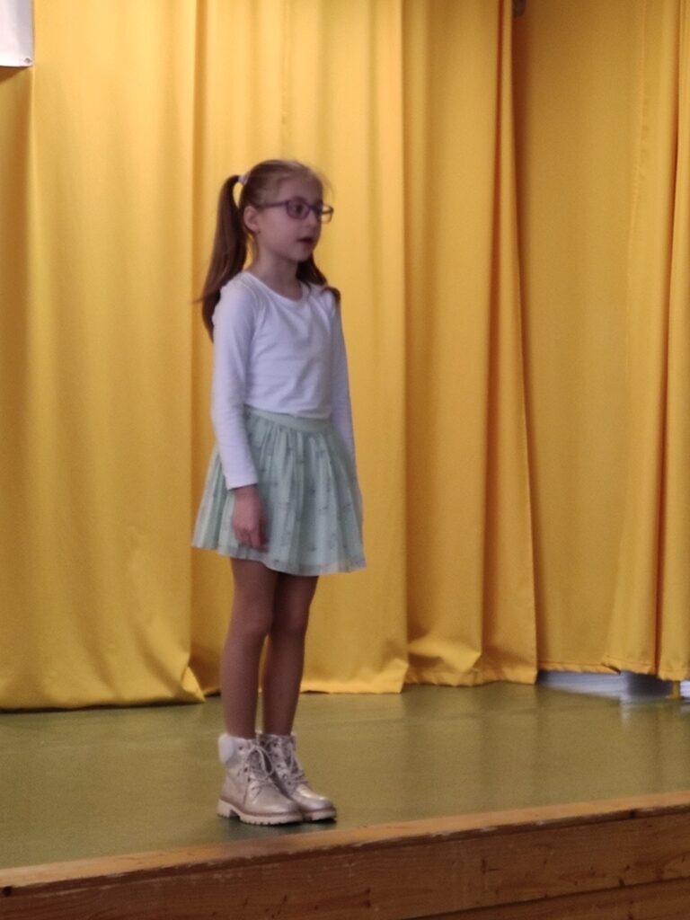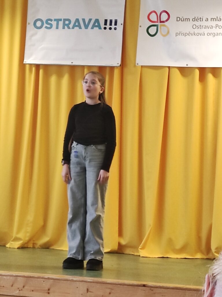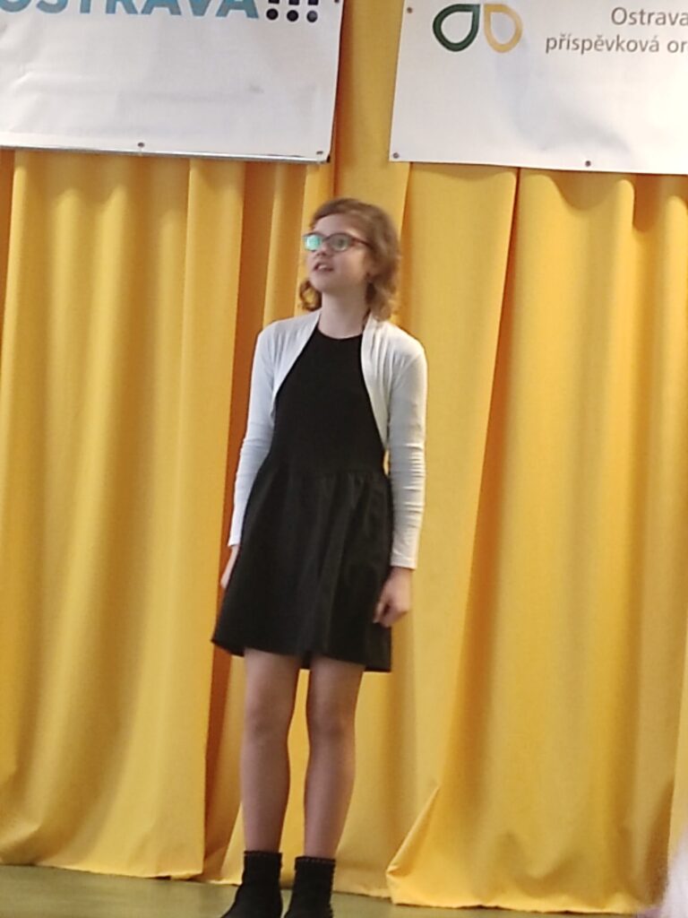 Okresní kolo se konalo v pátek 27. března 2026. Měli jsme zde naši zkušenou recitátorku Terezku Macečkovou z 2.A. Jen připomínám, že loni byla velmi úspěšná a postoupila až do krajského kola, kde se umístila ve zlatém pásmu. Terezčino vystoupení bylo ještě lepší než v obvodním kole, ale … . Konkurence byla opravdu velmi silná, převažovali žáci třetích tříd a mohli jsme sledovat až herecké výkony. Uznáváme, že porota měla velmi těžkou práci a Terezka se tentokrát bohužel mezi postupujícími neobjevila. I tak zaslouží obrovskou pochvalu a poděkování. Jistě bude i příště naším silným želízkem v ohni.