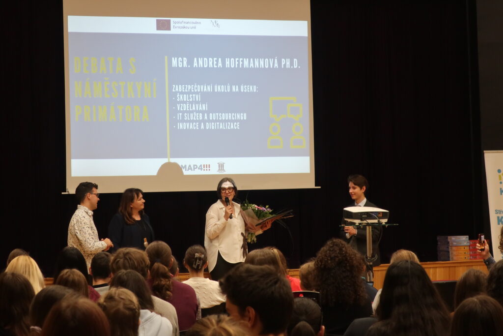Setkání svou účastí podpořila také náměstkyně primátora města Ostravy pro školství, Mgr. Andrea Hoffmannová, Ph.D., která ocenila aktivitu a spolupráci žákovských parlamentů.